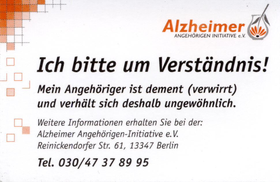 Überreichen Sie das Verständniskärtchen und erleben Sie, die spontane Solidarität Ihrer Mitmenschen.